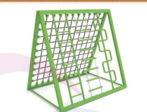 Angled grid-style monkey bar offers varied climbing routes, enhancing children’s motor skills and spatial awareness.