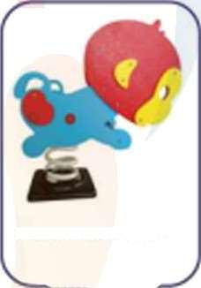 Bright multicolored bird-shaped playground spring rocker with red head and blue body for children’s entertainment.